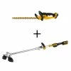 Make yard work easier with this DeWalt 20V Max Hedge Trimmer. Laser-cut shearing blades allow quick cutting of branches up to 3/4-in. The thick the pre-hardened, hooked tooth design ensures lasting use. It offers an air volume of up to 600 cu. ft. per minute and up to 125 MPH to enable efficient clearing. For convenient control, this trimmer includes a variable speed trigger and speed lock. The lightweight design minimizes user fatigue, and the high-efficiency brushless motor optimizes runtime and motor life.