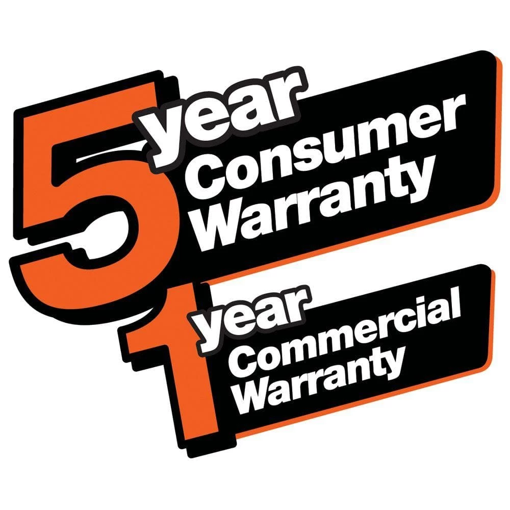 - Chainsaw comes with a 1-year commercial/5-year consumer warranty