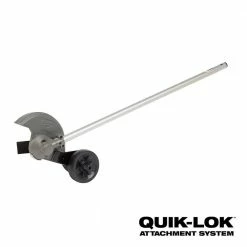 The Milwaukee M18 FUEL QUIK-LOK Edger Attachment is powered by the M18 FUEL Power Head with QUIK-LOK and is compatible with the QUIK-LOK Attachment System. The unit features an 8 in. blade and high strength guard for increased durability. The edger includes mud flaps to prevent dirt kickback, as well as a skid plate to protect the gearbox from concrete contact. The adjustable wheel allows users to set an optimized blade depth and tool angle for maximum control. The QUIK-LOK Attachments feature protected drive shafts for increased durability against drops and storage elements. The edger attachment also utilizes optimized gearing to manage the cordless M18 FUEL Power Head RPM output specifically for edging applications.
