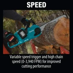 - Variable speed trigger and high chain speed (0-3,940 FPM) for improved cutting performance