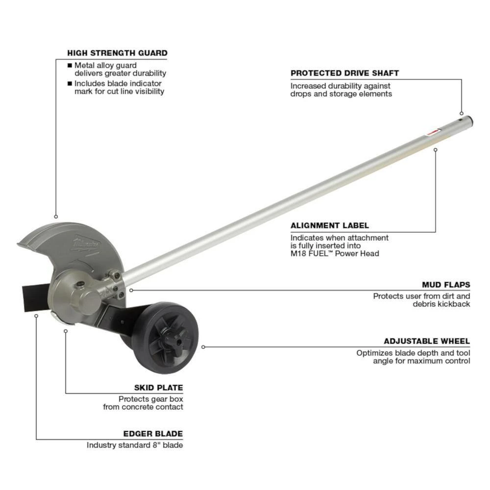 - 49-16-2718 edger: durable high strength guard; cut-line visibility blade indicator