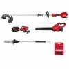 - Includes: (1) M18 FUEL power head with QUIK-LOK (2825-20), (1) M18 FUEL QUIK-LOK string trimmer attachment (49-16-2717), (1) M18 FUEL blower (2724-20), (1) M18 FUEL QUIK-LOK Pole Saw Attachment (49-16-2720), (2) 10 in. Saw Chain (49-16-2723), (1) M18 REDLITHIUM HIGH OUTPUT XC8.0Ah Battery (48-11-1880) and (1) M18 and M12 rapid charger (48-59-1808)