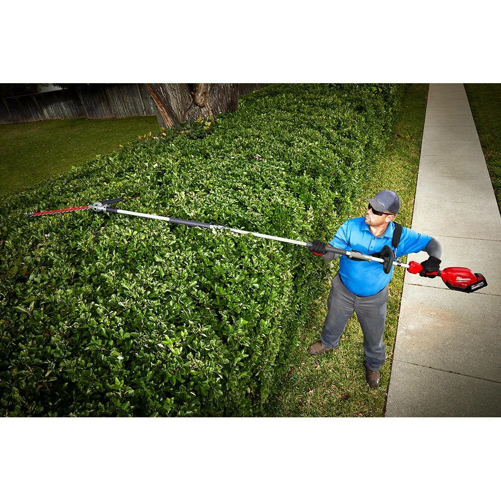 The Milwaukee M18 FUEL QUIK-LOK 10 in. Pole Saw Attachment is powered by the M18 FUEL Power Head and with QUIK-LOK is compatible with the QUIK-LOK Attachment System. The unit features a 10 in. Oregon bar and chain which provides users with smooth and fast cuts with minimal kickback. The pole saw attachment includes an automatic oiler for proper chain lubrication, easy access chain tensioner for quick adjustments to chain tension and a branch hook for added cutting leverage and branch removal. The Milwaukee M18 FUEL QUIK-LOK Edger Attachment is powered by the M18 FUEL Power Head with QUIK-LOK and is compatible with the QUIK-LOK Attachment System. The unit features an 8 in. blade and high strength guard for increased durability. The edger includes mud flaps to prevent dirt kickback, as well as a skid plate to protect the gearbox from concrete contact. The adjustable wheel allows users to set an optimized blade depth and tool angle for maximum control. The Milwaukee M18 FUEL QUIK-LOK Articulating Hedge Trimmer Attachment is powered by the M18 FUEL Power Head with QUIK-LOK and is compatible with the QUIK-LOK Attachment System. The attachment’s articulating mechanism allows for 270ยฐ rotation of the blade set, which gives users 13 operating positions and 1 storage position. The hedge trimmer attachment boasts a 20 in. blade with 1 in. cut capacity, allowing users to clear more material in a single pass.