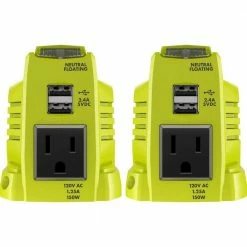 The RYOBI 18V ONE+ Power Source provides convenient, on-the-go power both on and off the jobsite. With a modified sine wave and 150-Watt of continuous output, this inverter is perfect for powering laptops, tablets, cell phones and other small electronics. This compact and lightweight design is compatible with all of your existing RYOBI ONE+ batteries making endless power even easier. Equipped with 2 USB outlets and one 120-Volt wall outlet for convenient and reliable power. Bundle includes 2 Power Sources.
