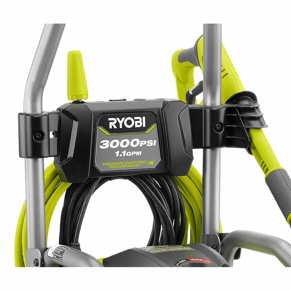 The RYOBI 3000 PSI 1.1 GPM Brushless Electric Pressure Washer can handle the toughest jobs without the hassle of gas. Blast through dirt, grime, oil, and other tough stains using up to 3000 PSI and 1.1 GPM of force. This pressure washer features a premium brushless motor with water cooling technology that increases tool efficiency. Ideal for use on driveways, siding, patio furniture, and other outdoor applications. For versatile cleaning, use the included 5-in-1 Quick-Change Nozzle (15Β°, 25Β°, 40Β°, Fan Soap, and Jet Soap) or Turbo Nozzle for 50% faster cleaning. When the job is complete, conveniently store the nozzles in the on-board accessory storage. Featuring a durable, hand truck frame design and large 12 in. flat-free wheels this pressure washer is designed for easy transport. The 35 ft. non-marring high-pressure hose provides 40% longer reach to access areas you may not be able to take your pressure washer. The on-board detergent tank offers hassle-free cleaning by eliminating the need to drag a bucket and hose behind you. The RYOBI 3000 PSI Brushless Pressure Washer is backed by a 3-year limited warranty.
