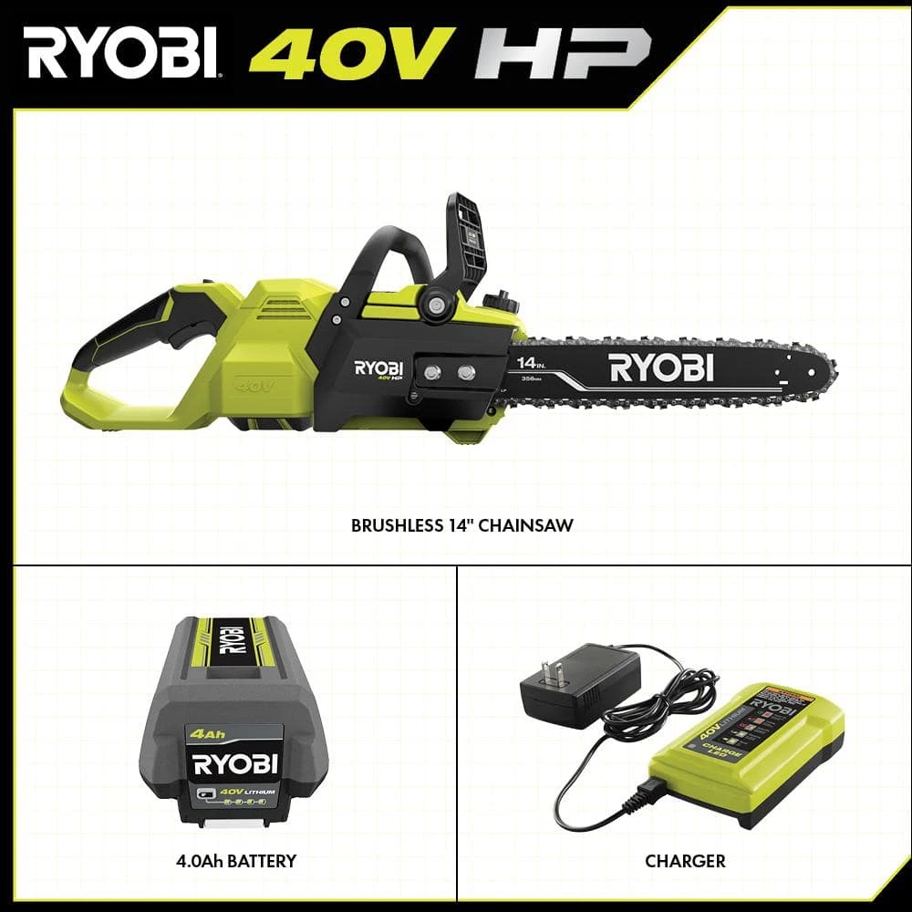- Includes RYOBI 40V 4Ah lithium-ion battery and charger
