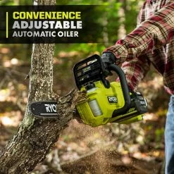 If you’ve wondered whether a cordless chainsaw could perform as well as gas, Ryobi has your answer. The 40V 14″ HP Cordless Chainsaw includes features to make your cutting experiences more efficient than a gas unit, with the convenience of battery powered operation. With the pull of a trigger, the 40V HP technology paired with a brushless motor delivers 15% more power, along with longer runtime and motor life. With a 24″ cut capacity, adjustable automatic oiler, side access chain tensioning, and on-board tool storage, you’ll experience easy, comfortable operation for any clearing jobs. As part of the Ryobi 40V system, it is compatible with all 40V batteries. Best of all, the Ryobi 40V 14″ HP Cordless Chainsaw is backed by 5-year warranty.
