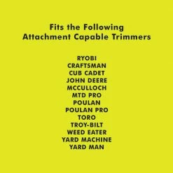 Use the RYOBI Expand-It Edger Attachment to transform your string trimmer into a powerful edger. Adjust the depth on the 8 in. serrated blade to help you create professional edges on different areas in your yard. Get the most out of your dual serrated edging blade by reversing it when dull to make use of fresh cutting edges and extending the life of the blade. This edger attachment can be used with RYOBI, Toro, Weed Eater, Troy Bilt, Murray, Poulan Pro Trimmers and other universal brand fit power heads and trimmers.