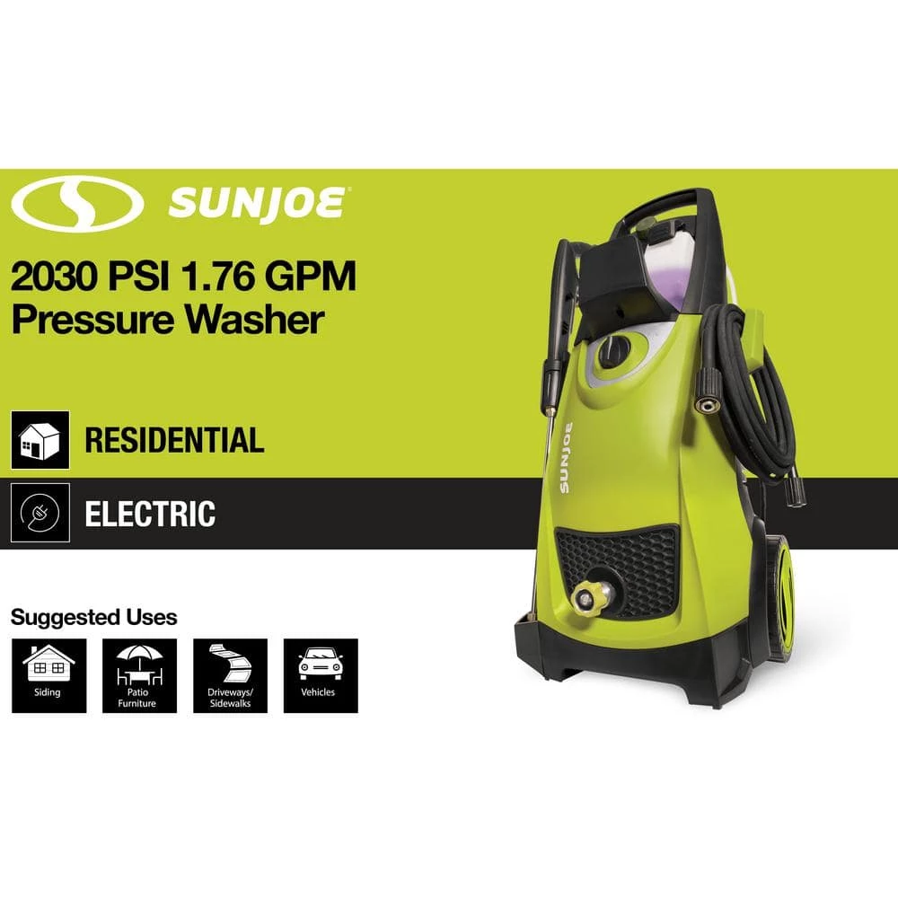 The Sun Joe SPX3000 pressure washer delivers it all to tackle a variety of cleaning tasks: homes, buildings, RV’s, cars, trucks, boats, decks, driveways, patios, lawn equipment, and more. This pressure washer packs a powerful punch with its 1800-Watt/14.5 Amp motor. The Sun Joe SPX3000 electric pressure washer generates up to 2030 PSI of water pressure (at initial discharge per CSA internal pressure testing) and 1.76 GPM (with nozzle open at minimum pressure) of water flow. Equipped with a dual detergent tank system, the Sun Joe SPX3000 pressure washer carries and stores two different types of detergent simultaneously in its two 0.9 L onboard, removable detergent tanks. Conveniently switch between different detergents with its detergent selection dial and blast away all sorts of grime. This pressure washer features a 34-in extension spray wand to access hard-to-reach areas. This pressure washer lets you tailor the pressure output of the spray to your cleaning need with Sun Joe’s five Quick-Connect spray nozzles. Interchange nozzles to quickly go from a high-pressure 0Β° pencil point jet to a low-pressure 40Β° fan spray or apply detergent to the cleaning surface with the soap nozzle for additional cleaning power. Your new pressure washer is backed by the Snow Joe + Sun Joe Customer Promise. We will warrant new, powered products for two years from the date of purchase. NO QUESTIONS ASKED. Contact Snow Joe + Sun Joe customer support at 1-866-766-9563 for further assistance.