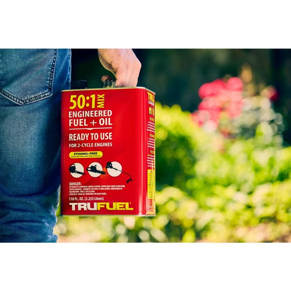 TruFuel is the first-ever premixed, ready-to-use fuel engineered specifically for portable 2-cycle gas powered equipment, providing time-saving convenience and superior performance. Steel Can Container. Advanced formula and fuel stabilizers precisely blended with full synthetic oil keeps fuel fresh for 2-years after opening and 5-years unopened.